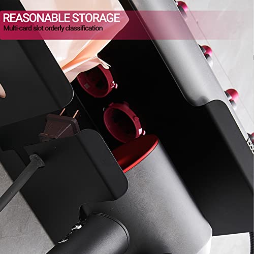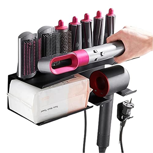 Scaffale compatibile con ferro arricciacapelli Dyson: adatto all'organizer per ferro arricciacapelli Dyson, ordinato ed esclusivo. Bigodini arricciacapelli 2 in 1, asciugacapelli arricciacapelli, installazione senza chiodi e foratura, può essere montato a parete o posizionato da solo sul comò. Spazio sufficiente per tutti gli accessori, tra cui 1 ferro arricciacapelli, 4 bigodini, 3 pettini, anche per spine, asciugamani di carta, molto funzionale.