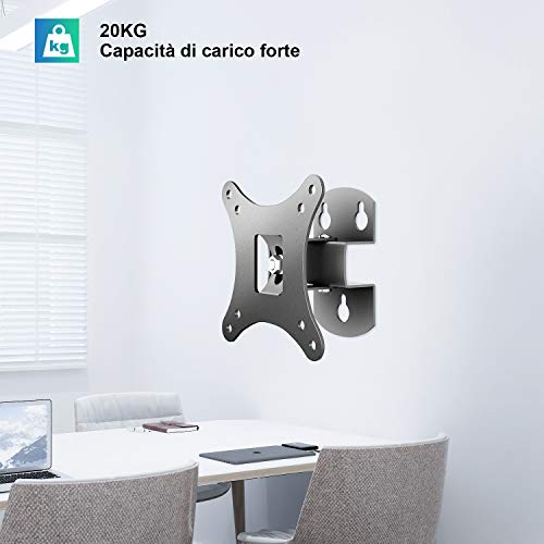 Supporto tv da parete, Staffa da Parete per TV 14-21 Pollici (35-53cm) a Schermo Piatto per Monitor (LED LCD plasma 4K 3D), Staffa Montaggio Girevole e inclinabile,VESA 75x75 100x100mm, Capacità 20KG