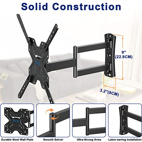 Supporto TV da Parete,Staffa per TV Inclinabile&Girevole per la Maggior Parte dei Televisori Curvi/Piatti 26-55 Pollici con Braccio di Articolazione Girevole,Montaggio per TV con Max VESA 400x400mm