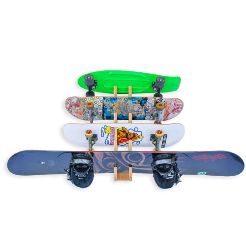 COR Surf Supporto da parete per 4 tavole da skateboard, supporto da parete per snowboard, contiene quattro tavole realizzate in bambù sostenibile, supporto da parete per 4 tavole per neve e skate