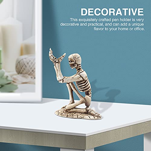 Supporto per penna scheletro, portapenne con teschio in resina, per casa, ufficio, scrivania, scheletro, per trucchi, matite, cancelleria, decorazione da scrivania