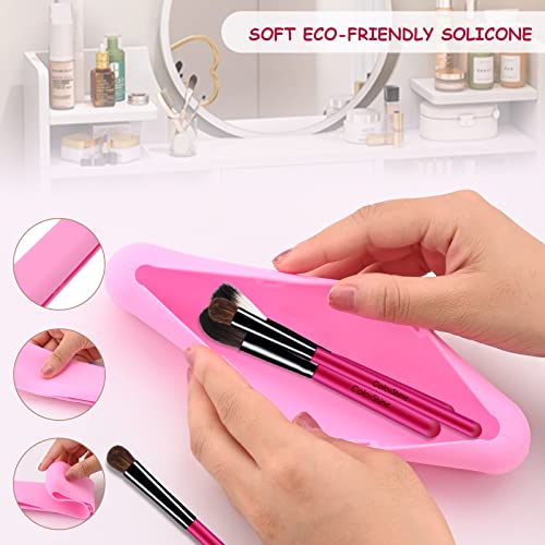 Supporto per Pennelli da Viaggio in Silicone,Alla Moda e Portatile Organizer per Pennelli da Trucco Portaoggetti per trucco Borsa Cosmetica Morbido ed Elegante per Viaggi (pink)