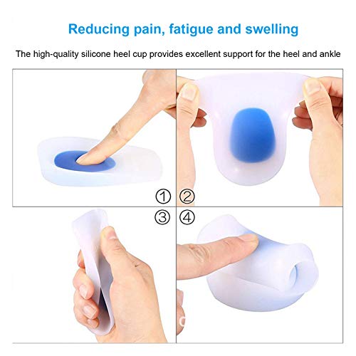 【Riduzione Di Dolore, Affaticamento e Gonfiore】: le coppe del tallone in silicone di alta qualità offrono un supporto eccellente per il tallone e la caviglia. Gli inserti per scarpe di protezione del tallone possono ridurre il dolore, l'affaticamento e il gonfiore.