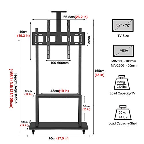 ✅ Spostati ovunque: questo carrello TV mobile ha ruote mobili a 360 °, che ti consentono di rimanere fermo o mobile in qualsiasi momento quando necessario. Ottimo per l'uso in casa, in classe, sala riunioni, hotel, aeroporto, centri commerciali, ospedali e altro ancora.