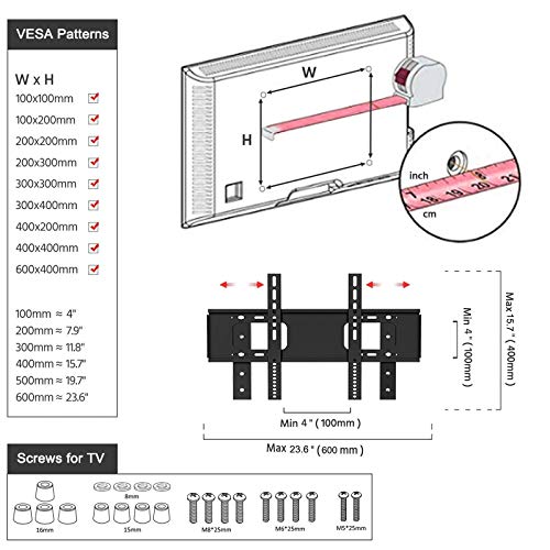 ✅ Adatto a TV da 32-70 pollici: Compatibile con la maggior parte degli schermi piatti 32 34 37 40 43 47 50 55 60 65 da 70 pollici fino a 220 libbre con modelli VESA di 100x100, 200x100, 200x200, 300x200, 300x300, 400x200, 400x400, 600x400. L'altezza massima dal pavimento al centro dello schermo è di 61 pollici.