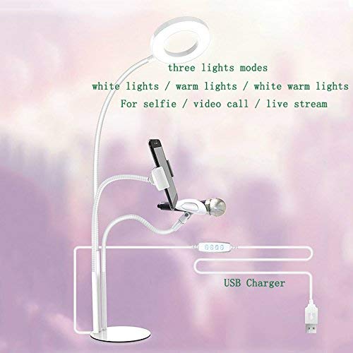 BNT Supporto professionale regolabile per telefono 3 in 1 con supporto per microfono Anello luminoso per selfie per flusso live Supporto per scrivania regolabile lungo braccio (teste per Stand-3 per l