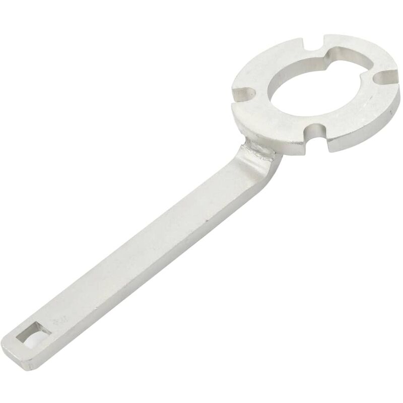 Il supporto per puleggia dell'albero motore è uno strumento indispensabile per mantenere in posizione l'albero dei motori di casa Volvo durante le operazioni di manutenzione sul dado della puleggia centrale. Il bullone di fissaggio della puleggia dell'albero potrebbe essere serrato saldamente e soluzioni alternative all'utilizzo dell'utensile corretto potrebbero risultare pericolose e causare danni alle componenti del motore. Questo attrezzo può venire anche utilizzato durante la manutenzione della puleggia dell'albero, trattenendo quest'ultimo per consentire il serraggio del bullone di fissaggio alla coppia specifica. Realizzato in resistente acciaio al carbonio, è estremamente robusto, durevole e garantisce una lunga durata. Materiale: Acciaio al carbonio Per mantenere in posizione l'albero dei motori di casa Volvo durante le operazioni di manutenzione sul dado della puleggia centrale. Materiale: Acciaio al carbonio Per mantenere in posizione l'albero dei motori di casa Volvo