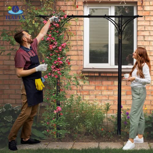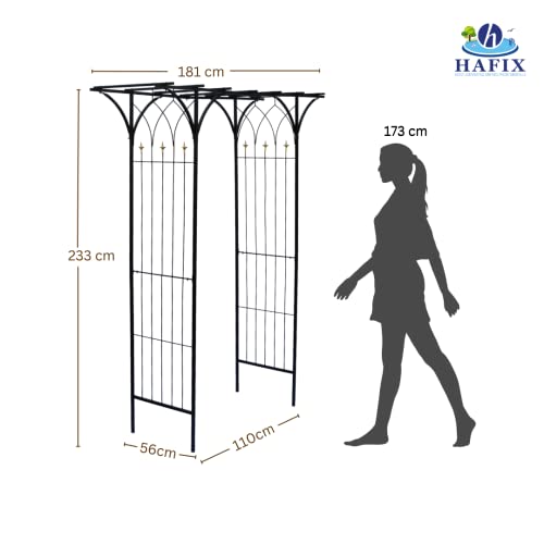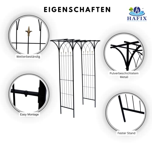 Ideale per decorare e abbellire il giardino, si può utilizzare anche come porta ad arco, resistente alle intemperie, di buona qualità e lavorazione, materiale: metallo, colore: nero, compreso materiale di montaggio, dimensioni: circa 180 x 235 x 65,5 cm, peso: 15 kg.