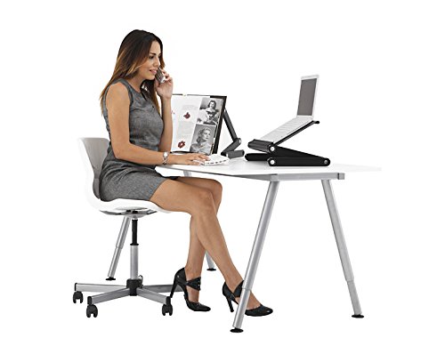 Gambe completamente regolabili. Ruota di 360 gradi e si blocca in varie angolazioni. Si piega facilmente diventando trasportabile. L'altezza delle gambe è regolabile da 4 a 50 cm, consentendo di tenere il computer praticamente a qualsiasi altezza o angolatura. Si piega facilmente grazie alle gambe pieghevoli diventando trasportabile.