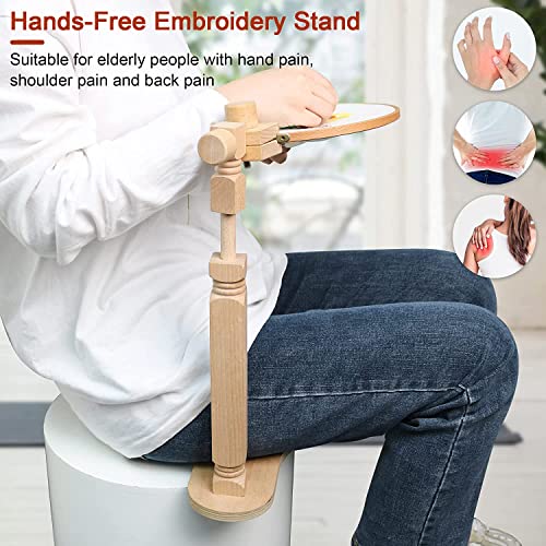 Supporto per ricamo in legno di faggio naturale Supporto per ricamo rotante regolabile per la maggior parte dei cerchi da ricamo, supporto per ricamo flessibile per progetti di ricamo a punto croce.