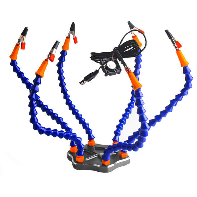 Questo prodotto può accelerare la saldatura, l'elettronica e i progetti fai-da-te, permettendoti di completare il tuo lavoro più velocemente che mai. Specifiche: Materiale: lega di alluminio + materie plastiche + silicone Colore: nero, viola (opzionale) Base in lega di alluminio: 133 * 14 mm / 5,24 * 0,55 pollici Lunghezza dei tubi del giunto universale: 295 mm / 11,61 pollici Dimensioni della confezione: 155 * 155 * 85 mm / 6,1 * 6,1 * 3,35 pollici Peso della confezione: 650 g / 1,43 libbre Elenco dei pacchetti: 1 * Base in lega di alluminio 6 * Tubi di giunzione universali />6 * Morsetti a coccodrillo 1 * Ventola USB