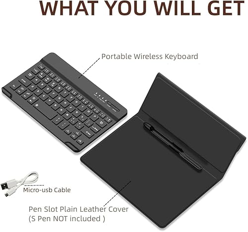 Set di 4 tastiere: include 1 tastiera wireless staccabile, 1 supporto pieghevole in alluminio, 1 mouse wireless, 1 penna capacitiva (non S Pen), il kit tastiera wireless e supporto è un d