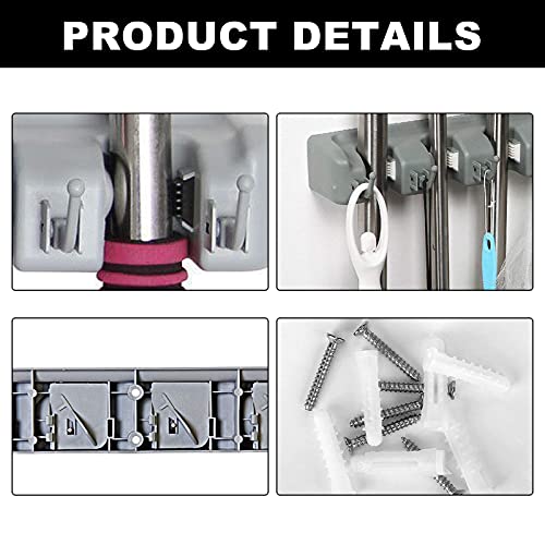 Materiali di alta qualità: il supporto per scopa in plastica ABS resistente garantisce una lunga durata. Il supporto ha 5 ganci a sgancio rapido e 6 ganci.