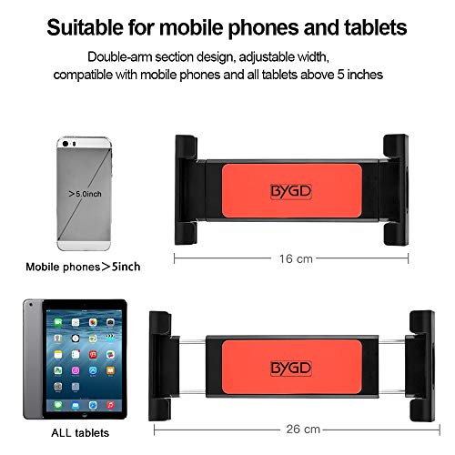 Rotazione e distanza regolabili a 360°: il supporto per tablet per poggiatesta auto BYGD è progettato con tre bracci regolabili, un giunto girevole a 360° per consentire di scegliere la posizione comoda dell'orologio in qualsiasi momento.