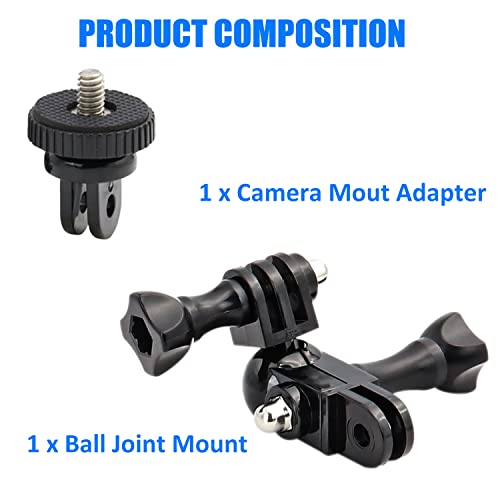 Supporto sferico con 1/4"-20 Adattatore, Cuxwill Supporto per braccio regolabile Ball Joint Mount Compatibile con GoPro Hero 10, 9, 8, 7, 6, 5, 4, DJI OSMO Action, Sony, Fusion, Sjcam, Yicam ecc.