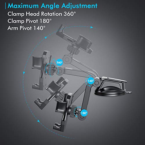【360 gradi Rotativi】Il giunto sferico rotante a 360 ° altamente flessibile offre angoli di visuale infiniti e assicurano il tuo telefono nell'angolazione perfetta per una guida più rilassata e sicura. Il robusto braccio del supporto telefono per auto può essere regolato su e giù di 140 gradi.