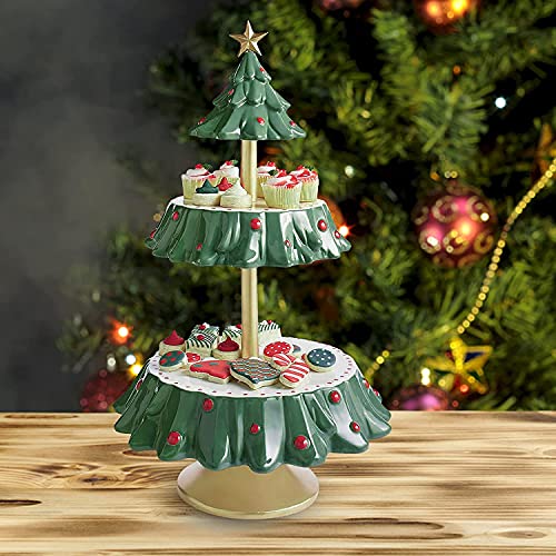 XYMY Supporto per snack di Natale, vassoio per alimenti in resina a due livelli, porta cupcake, contenitore per dolci di Natale, per feste, alberi di Natale e decorazioni artistiche in resina
