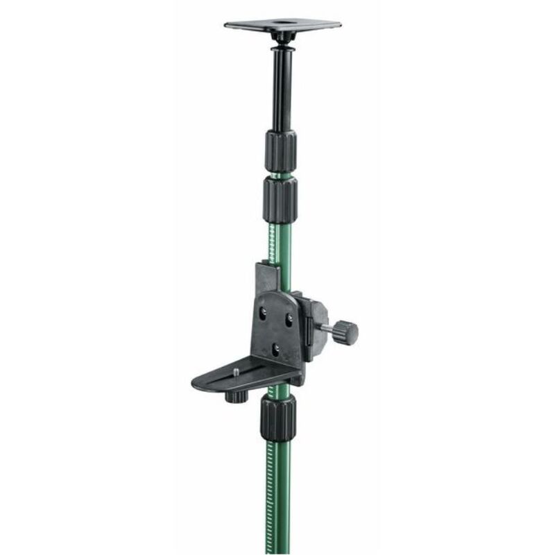 Asta telescopica TP 320. Facile posizionamento dei laser croce e della linea a qualsiasi altezza desiderata di 10 cm a 320 cm. Impostazione facile da quattro parti telescopiche con blocco girevole. Attacco flessibile e stabile con piastra a soffitto a molla ad ogni angolazione. Dispositivo con filo da 1/4 di pollice. Terminale con fori del dispositivo. Sacchetto di protezione