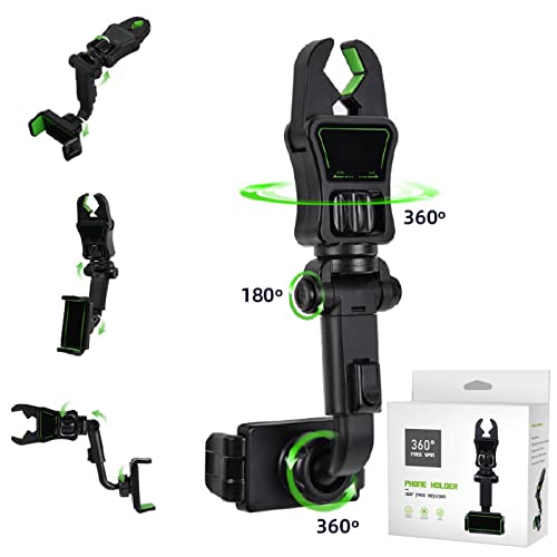 HiYi Supporto GPS per auto, 1 supporto per specchietto retrovisore automatico, staffa regolabile, universale, multifunzione, girevole a 360 gradi (clip verde)