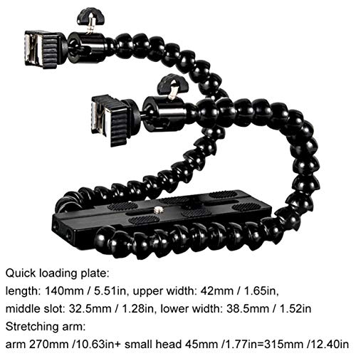 Supporto per staffa flash per fotocamera flessibile a doppio braccio Due supporti per slitte a caldo Staffa con testa a sfera per Speedlite DSLR Macro Shooting-black (BCVBFGCXVB)