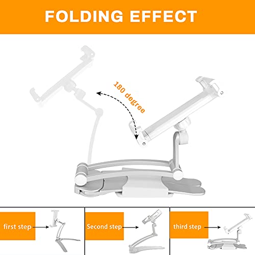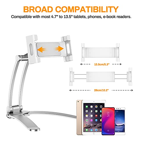 Supporto per Tablet da Cucina, Upkey Regolabile 2-in-1 Supporto da Parete/Desktop Supporto per Tablet da Cucina Pieghevole per Tablet 4,7" a 10,5" di Larghezza con Angoli di Visione a 360° (Argento)