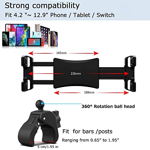 Si adatta alla maggior parte dei manubri tubolari/pali: il supporto universale per iPad ha un'ampia gamma di applicazioni, la dimensione è regolabile (intervallo di diametro: 1,7-5 cm). Può contenere un tablet sicuro e robusto sul palo, come spin bike, tapis roulant, ellittica, bicicletta fissa o altre attrezzature per il fitness con manubrio, supporto per microfono e treppiede, passeggino, carrello della spesa.