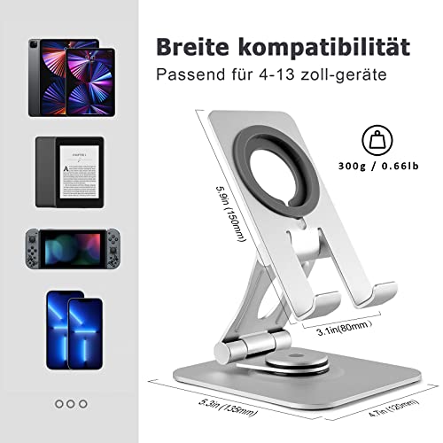 Supporto per tablet, girevole a 360°, supporto regolabile in alluminio, pieghevole, per iPad, Samsung Tab, Kindle (4,7-13 pollici), colore: argento