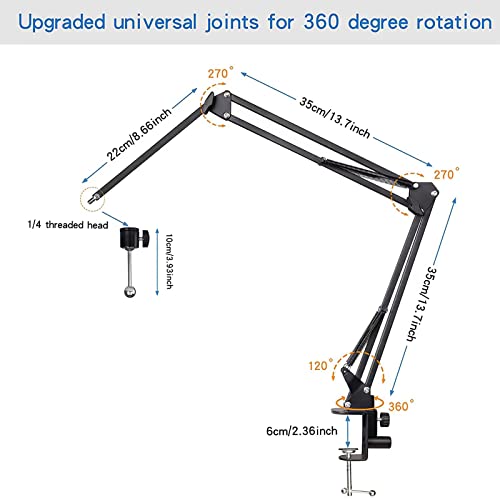Rotazione e regolazione a 360°: questo supporto supporta la regolazione di più parti, rotazione inferiore a 360 gradi, giunto del braccio regolabile a 270 gradi, angolo di rotazione dello schermo di 360 gradi, angolo di inclinazione di 180 gradi. L'intera lunghezza ha 110 cm/90 cm. Sia che tu sia seduto, in piedi o sdraiato, la funzione regolabile ti offre una copertura.