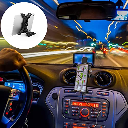 Supporto Tablet Auto 360 di Rotazione Universale Porta Tablet da Auto per CD Slot Supporto Cellulare da Tavolo Supporti per Telefono da Auto per Lettore CD, per 7"-11" Tablet Telefono Auto Scrivanie