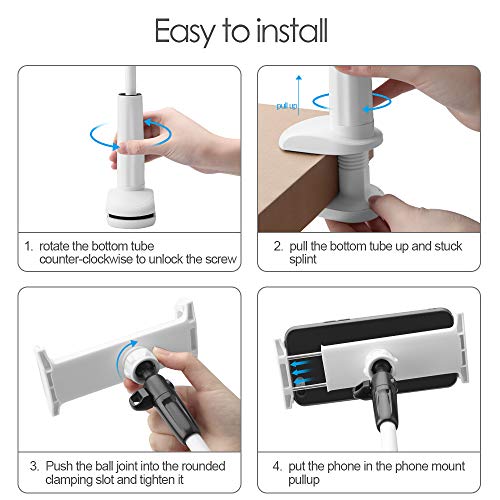 【Lunghezza Asta Flessibile e Rotazione a 360°】Ci sono due aste per il supporto del tablet, che consente di creare due combinazioni di lunghezze diverse. La rotazione di 360 gradi e le braccia flessibili facilitano il posizionamento del telefono alla distanza e all'angolazione ideali per una visione comoda.