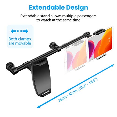 Supporto Tablet per Auto, Supporto Universale Poggiatesta Auto, Porta Tablet Regolabili con Doppia Posizione 4,7-12,9 Pollici Rotazione a 360 °, per Tablet, iPad, Smartphone e Kindle, ecc