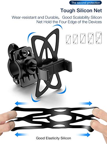 Impugnatura sicura e la più grande pinzetta: con l'aiuto di due punti di contatto, il dispositivo sarà fissato in modo sicuro sul manubrio con una maniglia in plastica rigida di alta qualità con una rete siliconica che fissa saldamente ogni angolo del tuo dispositivo al supporto. Ha anche il più grande morsetto sul mercato e può essere adattato a un manubrio di dimensioni