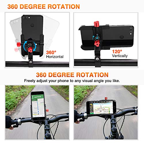 Rotazione a 360 gradi: questo nuovo supporto per telefono da bici può essere regolato liberamente per soddisfare qualsiasi direzione di cui hai bisogno, fornendo la massima flessibilità nella visualizzazione del telefono e tenendo traccia del chilometraggio, del tempo o delle mappe e goditi il comfort della tua corsa