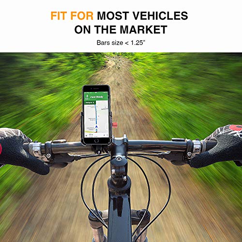 Compatibilità universale: il supporto per telefono per bicicletta è adatto per quasi veicoli sul mercato come motocicletta/MTB/mountain bike, E-bike/bici pieghevole/scooter ecc. Adatto per iPhone 11/XS Max/XR/X/8/7 Plus/6S Plus, Samsung Galaxy S10/S10 P/S9/S9 P/S8/S8 P/S7 Edge, Google Pixel, HTC, LG.
