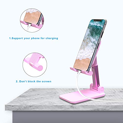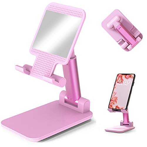 ZBC Supporto Telefono, Supporto per Cellulare Pieghevole Angolo e Altezza Regolabile Stabile Antiscivolo Portatile Dock Telefono con Specchio per Cellulare Switch iPhone iPad Tablet (4-9.7") (Rosa)