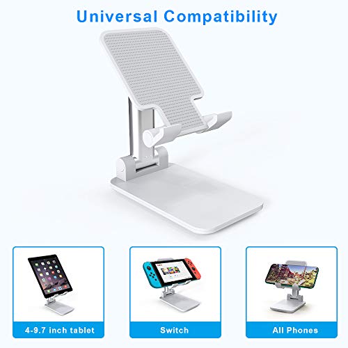 ZBC Supporto Telefono, Supporto per Cellulare Pieghevole Angolo e Altezza Regolabile Stabile Antiscivolo Portatile Dock Telefono per Cellulare Nintendo Switch iPhone iPad Tablet (4-9.7") (Bianco)