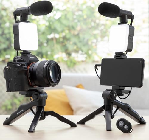 Supporto per telefono compatibile per qualsiasi tablet Samsung iPad iPhone con microfono luce LED treppiede clip il telefono telecomando per registrazione video + foto dal vivo colore (nero)
