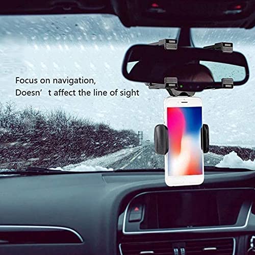 Supporto per telefono per specchietto retrovisore per auto: puoi facilmente collegare e scollegare il telefono cellulare, non bloccare la linea di vista, migliorare la sicurezza di guida e consentire chat, navigazione, ascolto di musica, ecc. Durante la guida.
