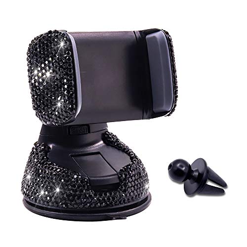Supporto per Telefono per Auto con Strass Bling,Regolabile a 360 Gradi Supporto per Telefono Cellulare Supporto per Presa d'aria in Cristallo Compatibile con iPhone 5 6s 7 8s 9 10 SE XS XR S20(Nero)