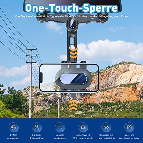 Supporto per Telefono per Auto,Supporto per Telefono Universale per Specchietto Retrovisore per Auto,360 Gradi Supporto Telefono Auto Multifunzionale Girevole e Retrattile,Adatto a Tutte le Auto