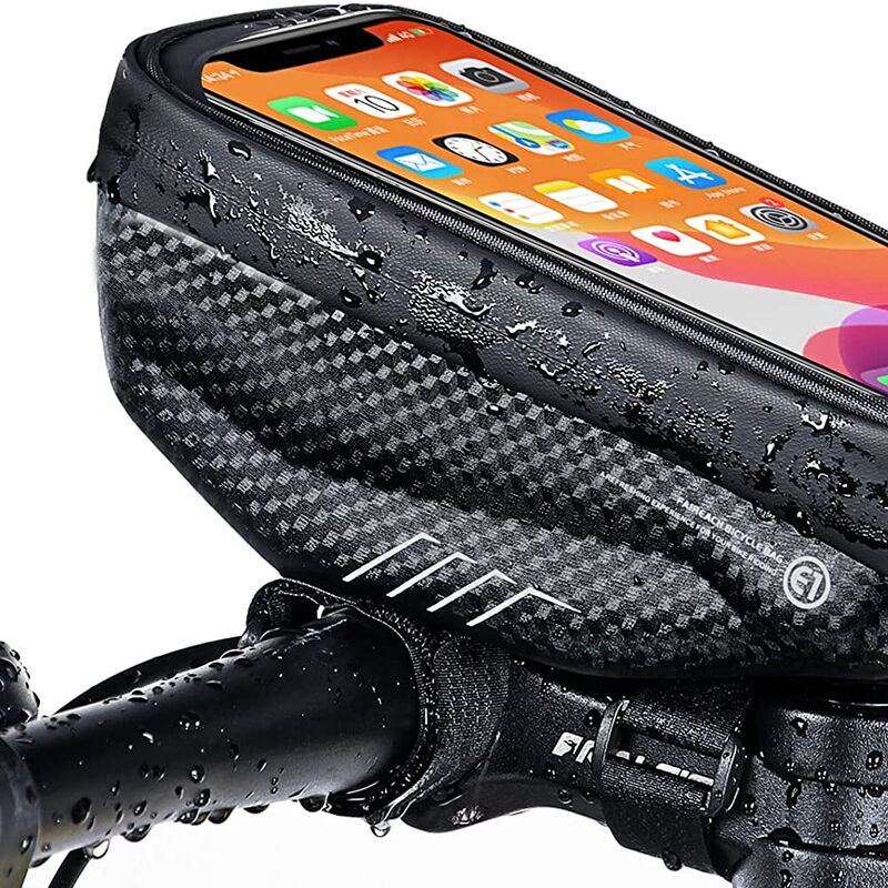 Borsa da manubrio per bici 2 in 1: la borsa porta telefono per bici combina una custodia e una custodia per telefono. È dotato di un touchscreen in TPU trasparente da 0,3 mm che offre oltre il 90% di sensibilità, garantendo la massima facilità d'uso durante il ciclismo. Completamente impermeabile: questa borsa da manubrio è realizzata con grani di carbonio impermeabili e materiale EVA di alta qualità. Le cerniere a doppia tenuta e l'incollaggio senza cuciture ti consentono di goderti il viaggio senza preoccuparti del bagnato o di un temporale improvviso! Installazione rapida e sicurezza: questa borsa da bici è progettata con tre cinghie per fissarla saldamente al manubrio della tua bici, e le cinghie antistrappo mantengono la borsa e i tuoi effetti personali al sicuro e non cadono mai. Design universale: la nuova generazione di scocca da 6,5 pollici è adatta a quasi tutti gli smartphone, come iPhone 12/11/ 11 pro/X/ XR Max/ 8/ 7/ 7 Plus/ 6/ 6S/ 5C, Samsung Galaxy S20/ S9/ S8/S7/ S6/S6