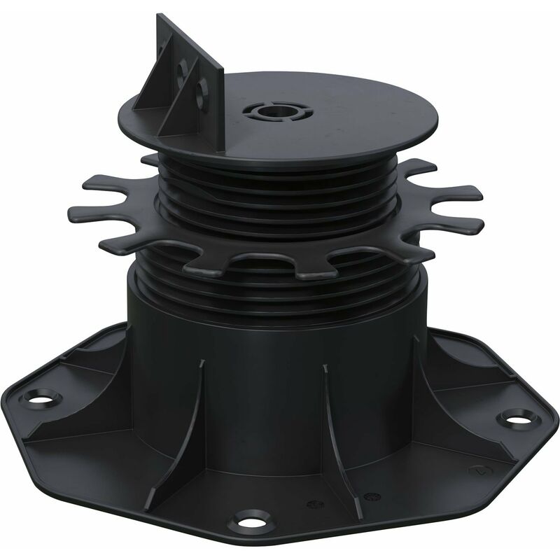 Con l'attacco standard, il cuscinetto della terrazza fornisce una superficie di appoggio per ogni profilo di sottostruttura. Avvitare la sottostruttura alla barra laterale garantisce una presa sicura e, grazie alla doppia filettatura, consente una comoda regolazione dell'altezza che si ottiene con una semplice rotazione sinistra/destra.