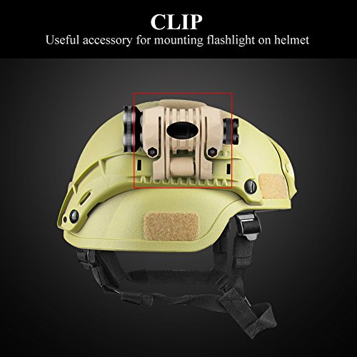 Supporto per Torcia Casco per Casco, tattico in plastica 1 "Tactical Airsoft Supporto per Torcia per Attacco rapido per sgancio rapido Torcia Clip per Attacco rapido per elmetto (Tan)