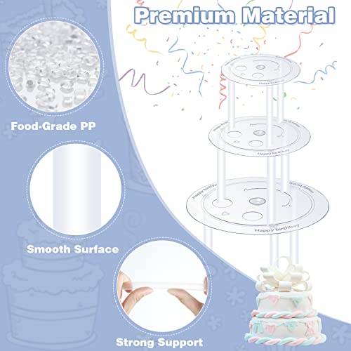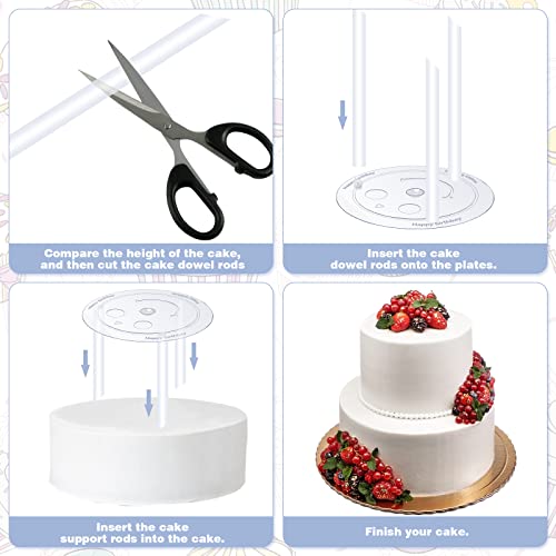 4 piatti per torte: il nostro set di bastoncini per torte contiene 4 tavole di diverse dimensioni. La dimensione perfetta per torte sfalsate con diametri di 3,5 pollici, 4,7 pollici, 6 pollici e 7,8 pollici. Il supporto per torte a 4 strati fa risaltare la tua torta. Aggiunge un fascino unico alla tua torta.