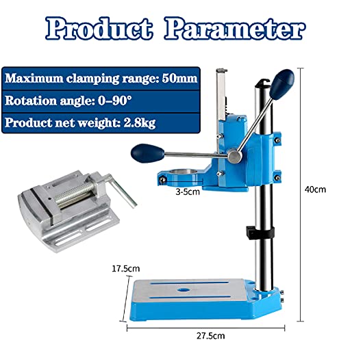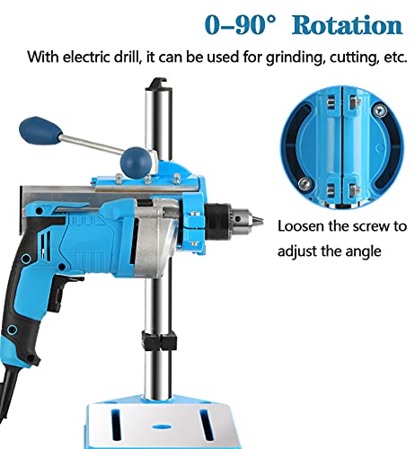 Altezza regolabile - il supporto a colonna per trapano ha una testa di serraggio in lega di alluminio ad alta durezza, che è più stabile durante il lavoro, assicurando che la perforazione non si discosti;