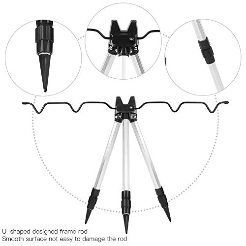 MATERIALE DI ALTA QUALITÀ: il treppiede per canne da pesca è realizzato in materiale in lega di alluminio di alta qualità, robusto, resistente e di lunga durata.