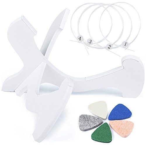 Supporto per Ukulele e Violino + 5pz Plettri Feltro per Ukulele + 1 set Corde di Ukulele in Nylon