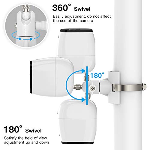 Diametro regolabile: la staffa di montaggio universale può regolare il diametro dell'anello in modo flessibile, il diametro può essere regolato da 1,96 pollici a 7,87 pollici, in modo che le tue fotocamere Arlo Pro 3, Arlo Pro 2, eufyCam 2C/3C, eufyCam 1 e 2, eufyCam E, Arlo Ultra, Arlo Pro, Arlo HD e Arlo Go siano installate più saldamente.