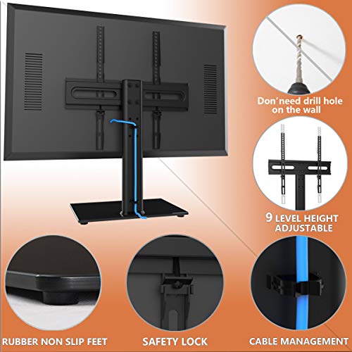 Supporto universale girevole per TV da tavolo per TV LCD a LED da 27 a 60 pollici, supporto regolabile in altezza con base in vetro temperato e gestione dei fili, VESA 400 x 400 mm, HT06B-001P