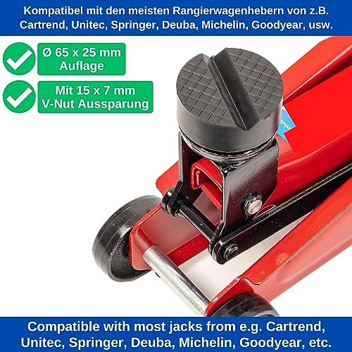 ✅ [ADATTO PER LA MAGGIOR PARTE DELLE AUTO E DEI CRIC] Questo cuscinetto universale in gomma è un blocchetto antiscivolo affidabile per tutti i più comuni cric auto di marchi come Cartrend, Unitec, Springer, Deuba, Michelin, Goodyear ecc.
